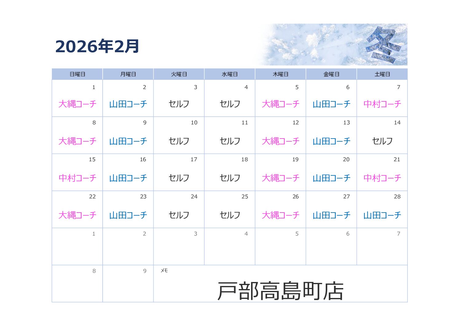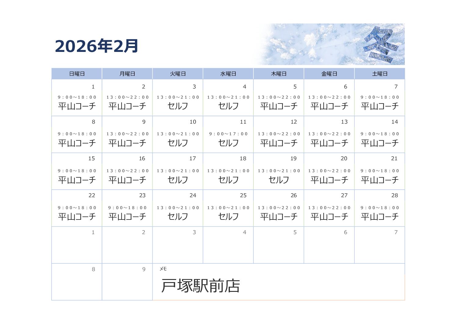2月上大岡店シフト表 2026 1/27 all 2026年1月27日 all 2月山下町店シフト表 2月戸部高島町店シフト表 関連記事 2月上永谷店シフト表 2026年1月27日 2月戸部高島町店シフト表 2026年1月27日 2月山下町店シフト表 2026年1月27日 2月戸塚駅前店シフト表 2026年1月27日 1月上永谷店シフト表 2025年12月20日 1月戸部高島町店シフト表 2025年12月20日 1月上大岡店シフト表 2025年12月20日 1月山下町店シフト表 2025年12月20日