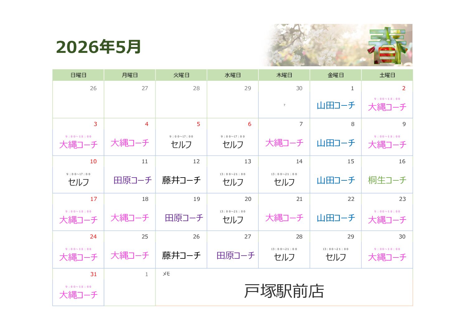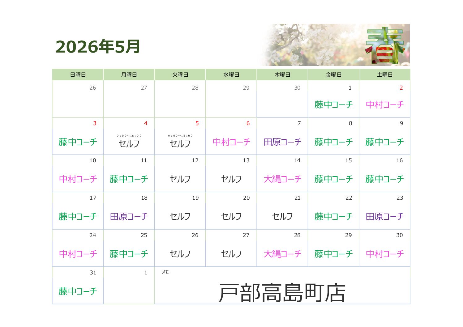 5月戸部高島町店シフト表 2026 4/23 all 2026年4月23日 all 5月山下町店シフト表 5月上永谷店シフト表 関連記事 5月上永谷店シフト表 2026年4月23日 5月山下町店シフト表 2026年4月23日 5月戸塚駅前店シフト表 2026年4月23日 シュミレーション新機種導入決定‼ 2026年3月27日 4月上永谷店シフト表 2026年3月24日 4月戸部高島町店シフト表 2026年3月24日 4月上大岡店シフト表 2026年3月24日 4月山下町店シフト表 2026年3月24日
